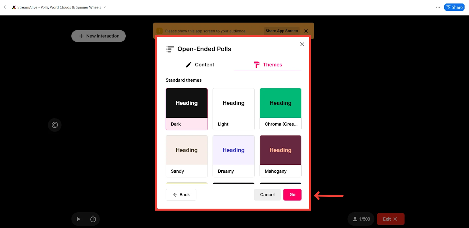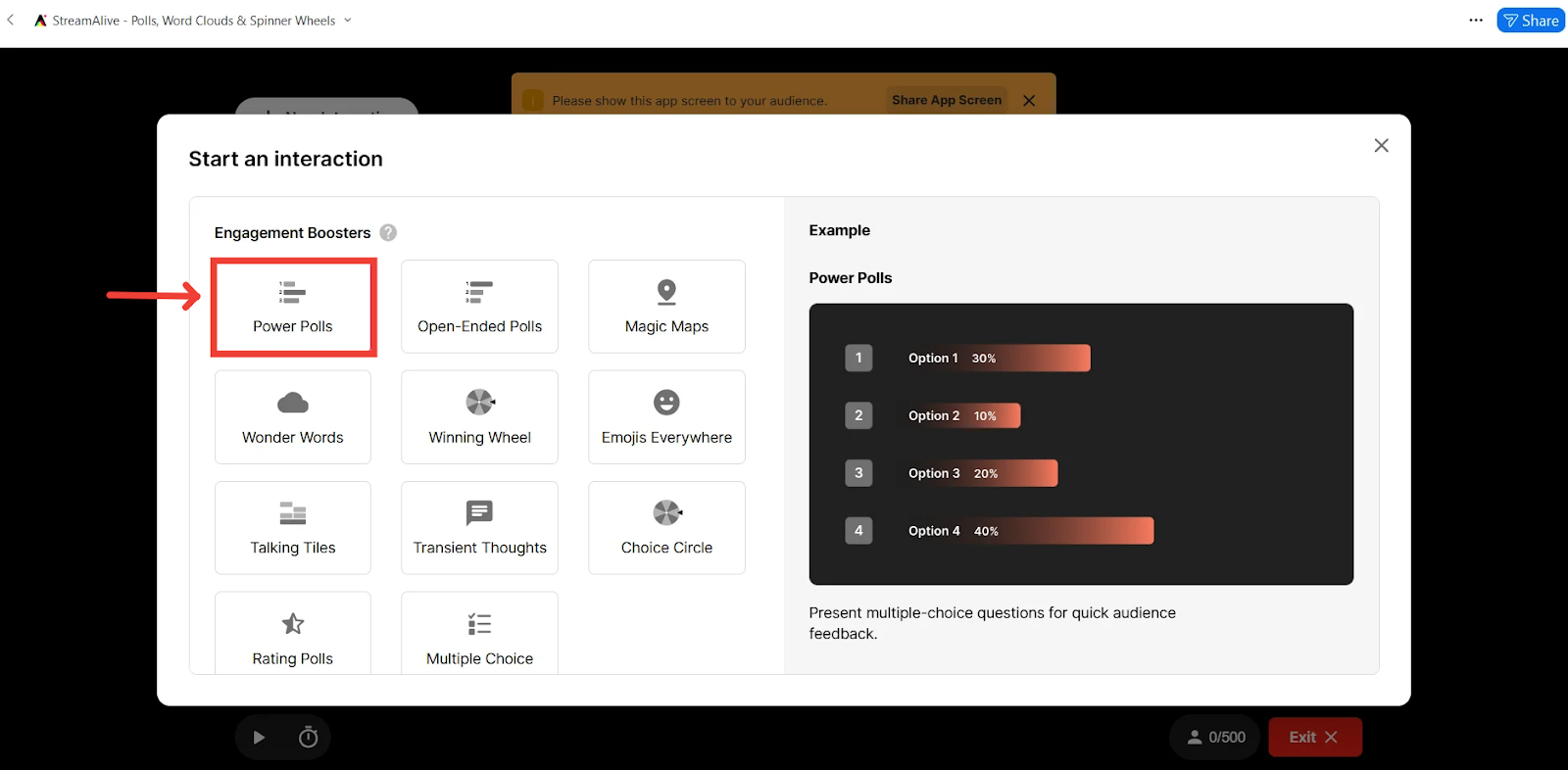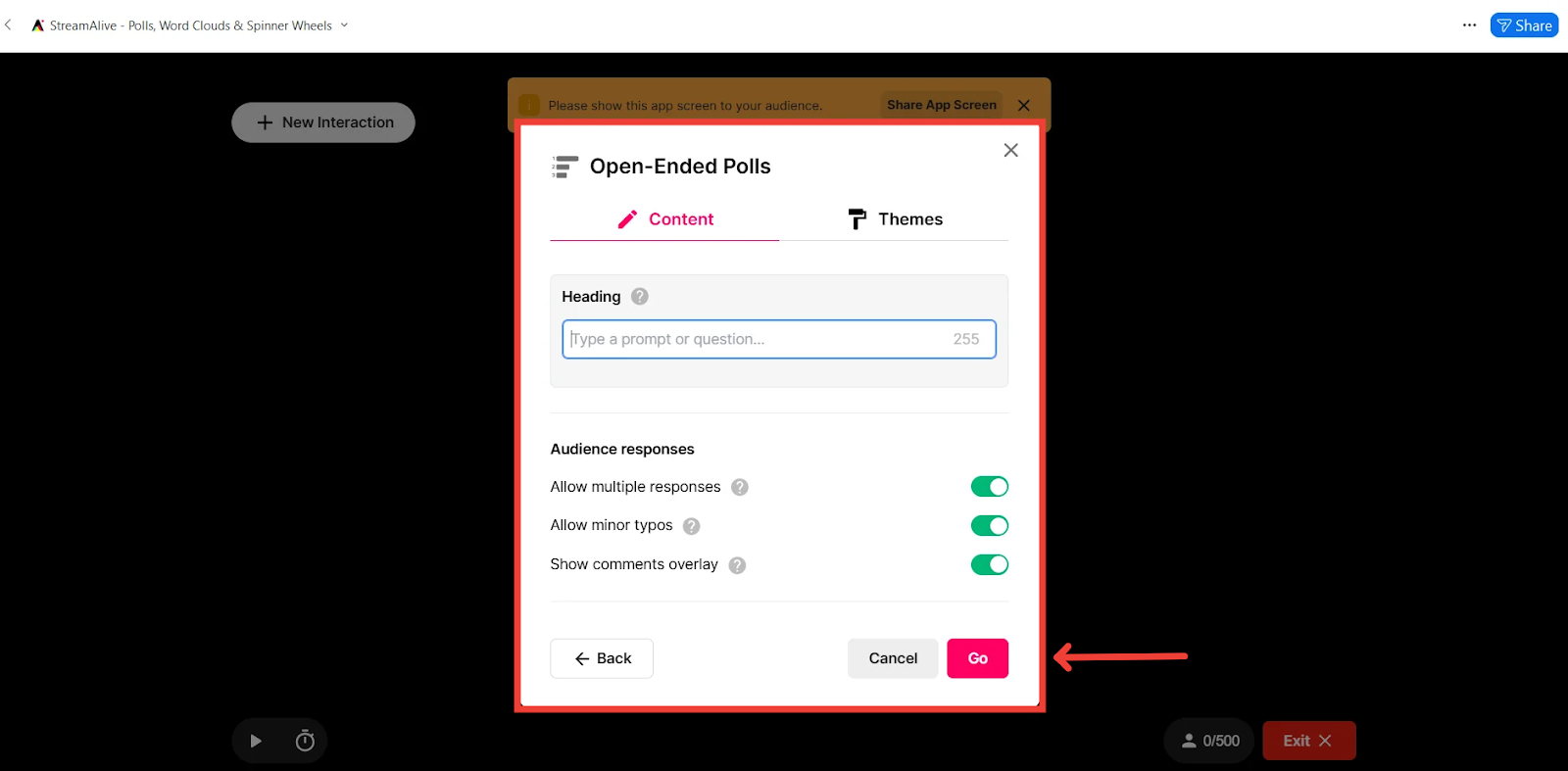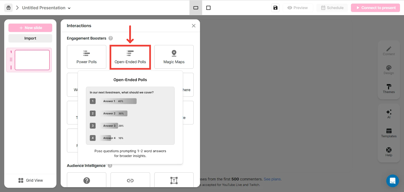 For example, if a conversation sparks a new topic, you can launch an Open-Ended Poll on the spot to gather diverse opinions, generate ideas, or collect audience feedback instantly.