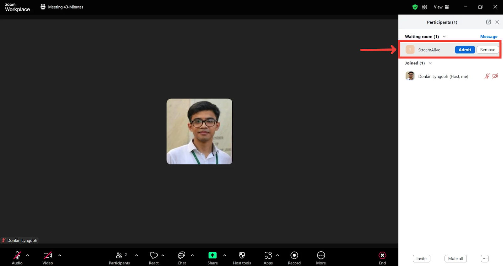 5. A pop-up asking you to admit the bot will appear (In cases like Zoom with the waiting room disabled, or YouTube/Twitch and similar platforms, it will join automatically)