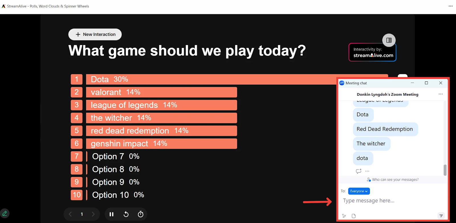 StreamAlive’s Open-Ended Polls allow participants to type their answers in chat without being limited to predefined options.