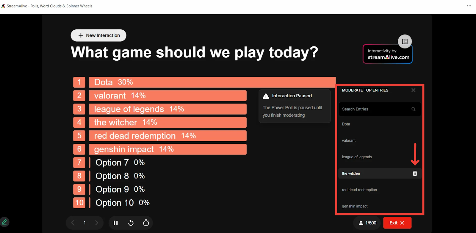 11. If you’d like to filter out certain answers from the poll, you can use the moderation feature to hide them.