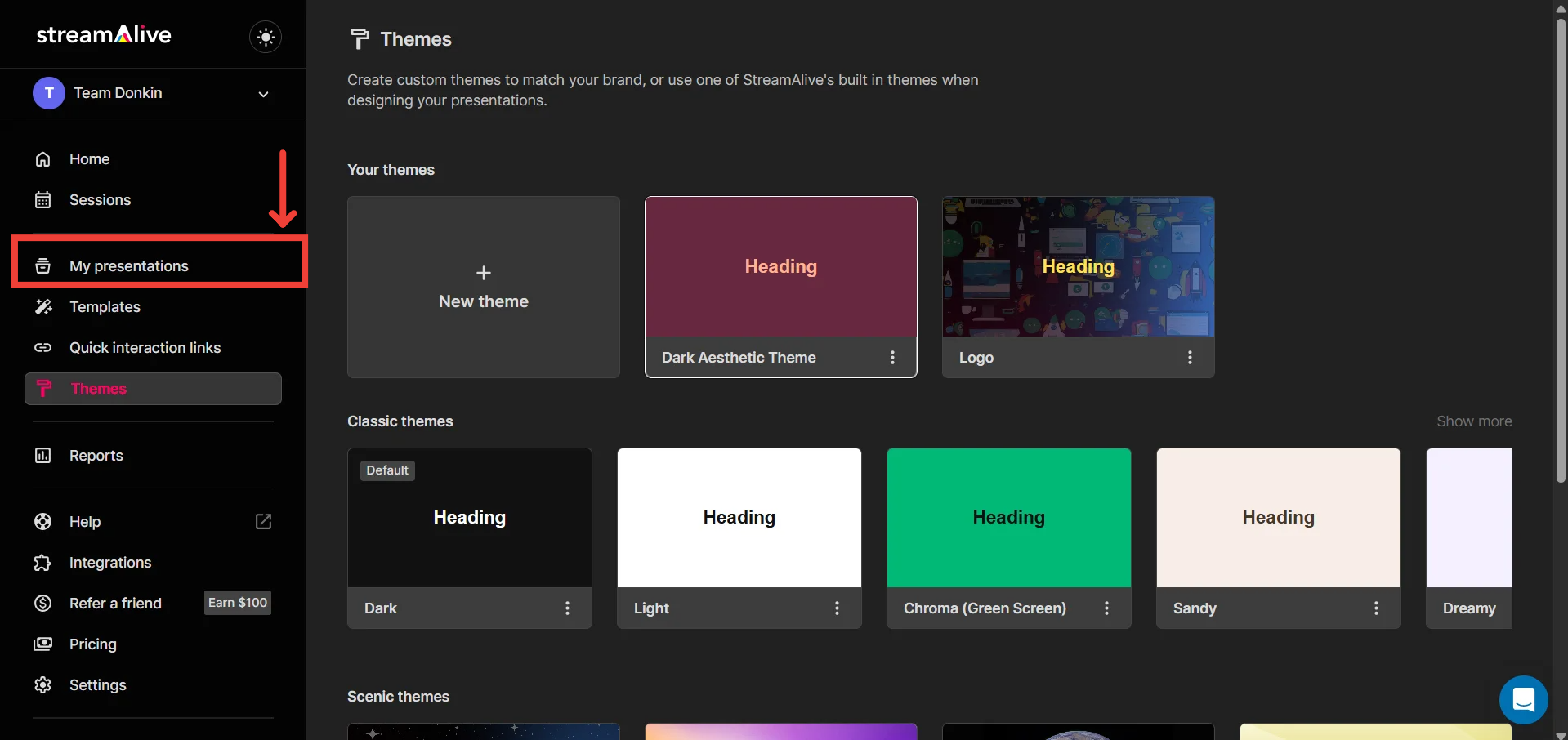 Updating your presentation theme in StreamAlive is a quick and easy way to refresh the look of your session and match it to your event’s tone, audience, or branding. Whether you want a classic, professional appearance or a scenic, immersive backdrop, switching themes ensures that your presentation stays visually engaging.